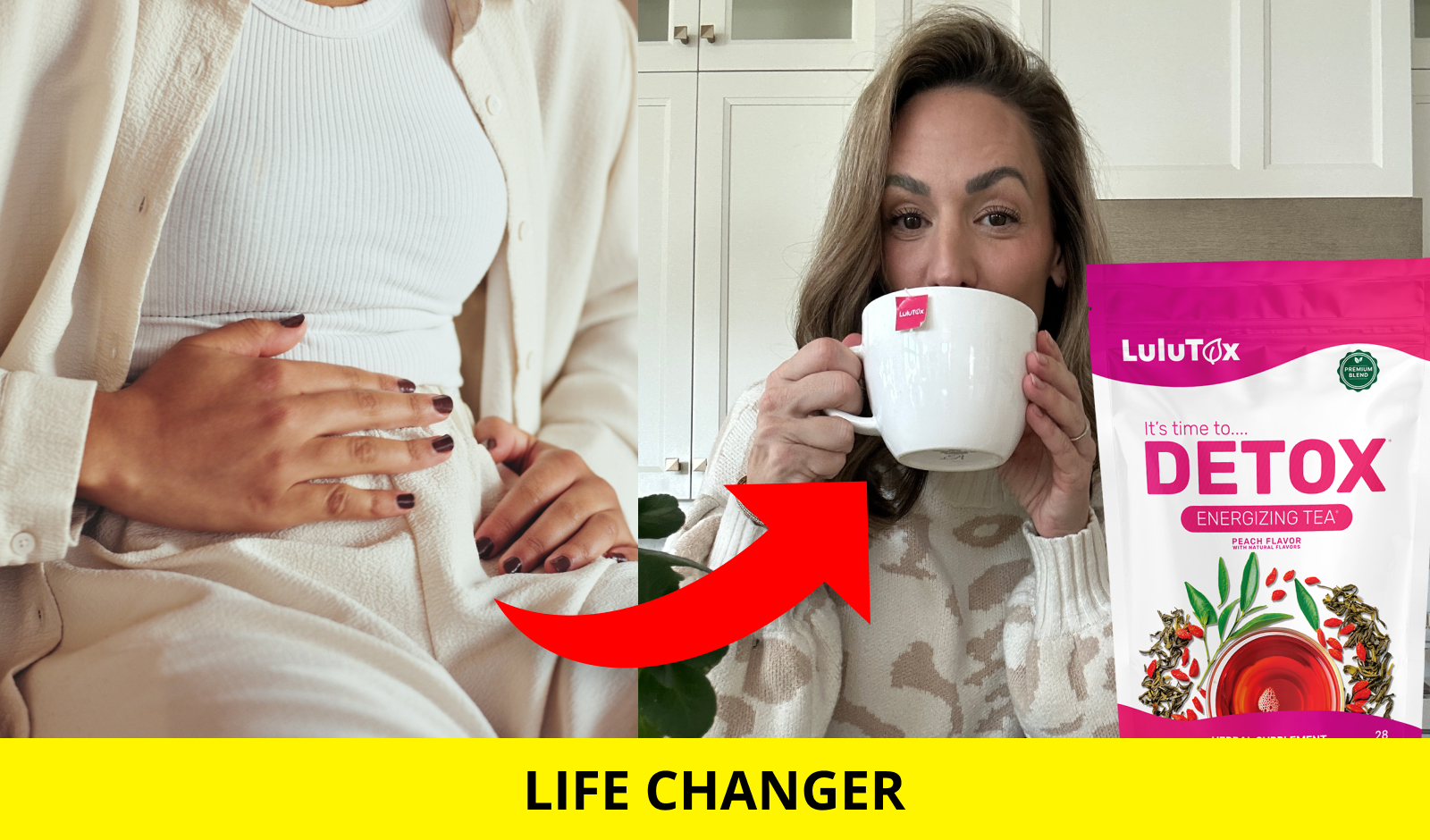 I know it sounds too good to be true, but just one cup of Lulutox Detox Tea each day completely changed the way I felt. This tea naturally boosts metabolism, reduces bloating, smooths digestion, and curbs cravings, all at the same time.